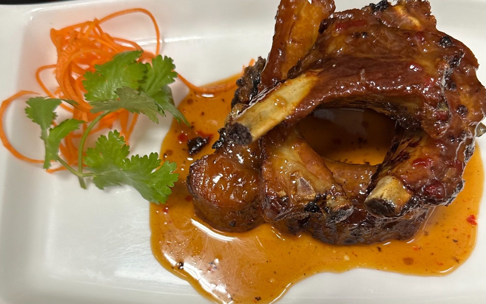 Ok. I should have taken this pic before I started eating it. But I have never left a review before , and didn't expect to, but this dish was too good for me not to mention it. Whole lobster with peppercorn sauce. Best lobster I've ever had, said is amazing. Really impressed. Peppercorn has a slight kick to it so if you like bland flavors this is not for you. Really great dish! Thank you Erawan